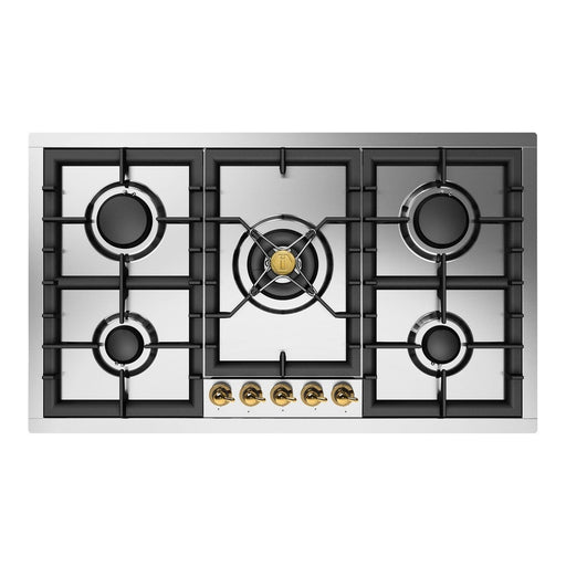 ILVE UHCPT95N Nostalgie II 36 inch Built-In Gas Cooktop with Total Black Brass Burners, in Stainless Steel