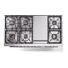 Available gas cooktops(hobs) range from 30 inch up to 60 inches with up to 8 burners and can be integrated with French top (coup de feu) and griddle. Induction cooktops(hobs) are flush-mounted, from 36 inch up to 48 inches: the latter version is equipped with no less than 6 cooking zones and the bridge function.