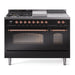 Nostalgie range cookers integrate highly professional technologies and excellent materials with a classic style that is always inspiring. Undisputed protagonists of the kitchen, they offer a complete choice of sizes (from 30 to 60 inches) and various configurations: you can choose the flush-top induction up to 6 cooking zones with bridge function for 48 inches version, single or double oven, standard colors or RAL colors on request, various finishes and accessories. Only available as an option for the Nostalgie collection, Noblesse frames are more than just a detail: they are a fine design feature that frames the front panels, matching the metallic finishes of the handles and knobs. The blind door inspired by the past is another option that elegantly enriches the style of Nostalgie.