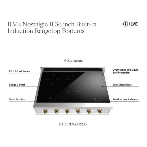 View full detailsILVE UHCPI366N Nostalgie II 36 inch Built-In Induction Rangetop with 6 Elements (Stainless Steel, Brass)