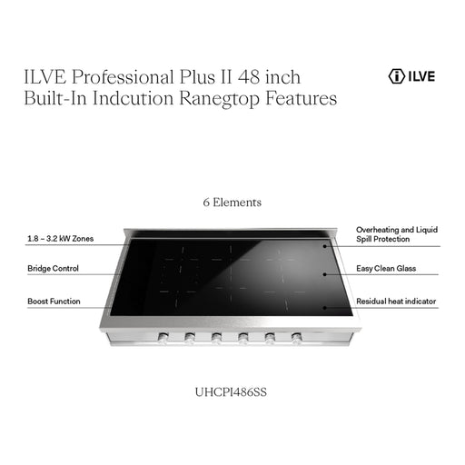 ILVE UHCPI486 Professional Plus II 48 inch Built-In Induction Rangetop, in Stainless Steel