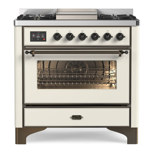 ILVE 36 Inch Majestic II Series Dual Fuel Natural Gas Range with 6 Burners and Griddle with 3.5 cu. ft. Oven Capacity TFT Oven Control Display (UM09FDNS3)